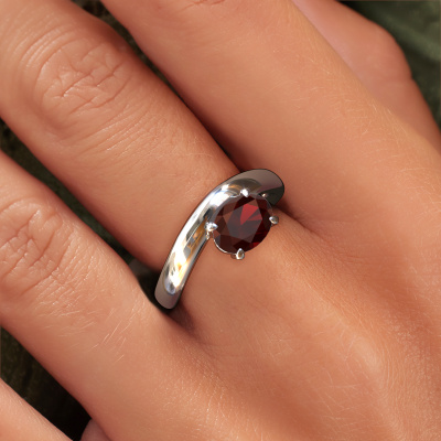 This platinum ring is called Floor OVL and is set with garnet. Do you keep up with the latest fashion trends? Do you want a unique engagement ring that matches your lifestyle? This twist engagement ring is an extraordinary ring which can be