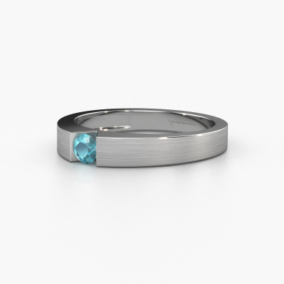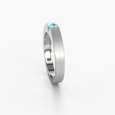 This platinum ring is called Lizzy 1 and is set with blue topaz. Do you keep up with the latest fashion trends? Do you want a unique engagement ring that matches your lifestyle? This edgy engagement ring is an extraordinary ring which can be custom-made to fit your or her personal style. This modern platinum engagement ring is set with blue topaz. Our blue topaz are carefully selected for this specific ring in order to create the best effect. Our expert goldsmith will create your ring in our own artisan studio where the blue topaz will be set with great care. The ring will then be polished to perfection. Nothing but the best for the love of your life! This jewel is created to add sparkle to your finger, each jewel is lovingly made by hand by our goldsmiths.By using our modern techniques, we can design and customize the finest quality jewels with the utmost care for you. Our engagement rings are always priced 30 percent lower than other jewellers. We make engagement rings to order so we don't have to maintain a large stock. If you have a certain budget, we are more than happy to advice you accordingly.Do you have a specific ring in mind? One you came across somewhere. Please feel free to tell us your wishes and we will turn your design into a unique engagement ring. You can follow the development of your ring design because we use 3D drawings. This gives you a realistic preview of your design. We will gladly send you a non-binding offer, based on a fair price/ quality ratio. It will amaze you.To make it easier for you, we offer a 30 day return policy. Check our terms and conditions.