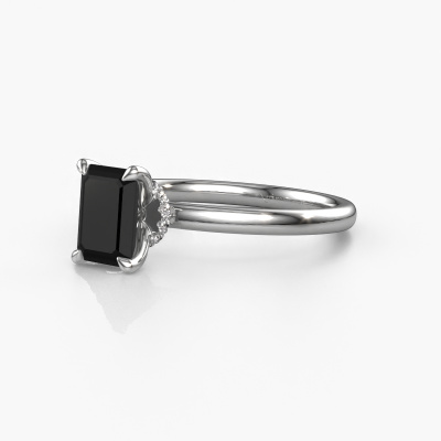 The ring shown above is called the Crystal EME 3, we call this a solitaire ring because it contains a single gemstone. The engagement ring is made in platinum and has a emerald cut black diamond of 1.380 crt. This classic platinum solitaire ring with exquisite emerald cut black diamond is a beautiful engagement ring. The open prong setting allows light to strike the gemstone from various angles. The ring also stands out because of the high positioning of the gemstone. Because diamonds symbolize true love and purity, they make the perfect gift for the love of your life. The symbol of eternal love is the centerpiece of this solitaire ring. Like a diamond, all other types of precious metal have their own attributed symbolic meaning. You can compile the solitaire engagement ring yourself in various precious metal combinations. This one has the combination of platinum with platinum. Each piece of jewelry is made by a team of passionate goldsmiths and jewel designers. This will make your crown jewel truly eye-catching.By using our modern techniques, we can design and customize the finest quality jewels with the utmost care for you. Our engagement rings are always priced 30 percent lower than other jewellers. We make engagement rings to order so we don't have to maintain a large stock. If you have a certain budget, we are more than happy to advice you accordingly.Do you have a specific ring in mind? One you came across somewhere. Please feel free to tell us your wishes and we will turn your design into a unique engagement ring. You can follow the development of your ring design because we use 3D drawings. This gives you a realistic preview of your design. We will gladly send you a non-binding offer, based on a fair price/ quality ratio. It will amaze you.To make it easier for you, we offer a 30 day return policy. Check our terms and conditions.