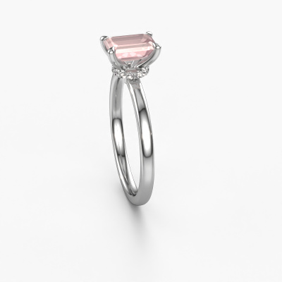 The ring shown above is called the Crystal EME 3, we call this a solitaire ring because it contains a single gemstone. The engagement ring is made in platinum and has a emerald cut morganite champagne of 7x5 mm. This classic platinum solitaire ring with exquisite emerald cut morganite champagne is a beautiful engagement ring. The open prong setting allows light to strike the gemstone from various angles. The ring also stands out because of the high positioning of the gemstone. Because diamonds symbolize true love and purity, they make the perfect gift for the love of your life. The symbol of eternal love is the centerpiece of this solitaire ring. Like a diamond, all other types of precious metal have their own attributed symbolic meaning. You can compile the solitaire engagement ring yourself in various precious metal combinations. This one has the combination of platinum with platinum. Each piece of jewelry is made by a team of passionate goldsmiths and jewel designers. This will make your crown jewel truly eye-catching.By using our modern techniques, we can design and customize the finest quality jewels with the utmost care for you. Our engagement rings are always priced 30 percent lower than other jewellers. We make engagement rings to order so we don't have to maintain a large stock. If you have a certain budget, we are more than happy to advice you accordingly.Do you have a specific ring in mind? One you came across somewhere. Please feel free to tell us your wishes and we will turn your design into a unique engagement ring. You can follow the development of your ring design because we use 3D drawings. This gives you a realistic preview of your design. We will gladly send you a non-binding offer, based on a fair price/ quality ratio. It will amaze you.To make it easier for you, we offer a 30 day return policy. Check our terms and conditions.