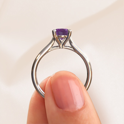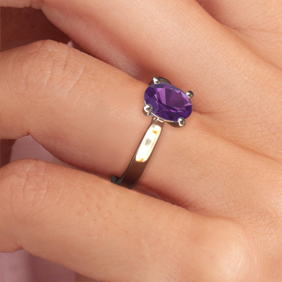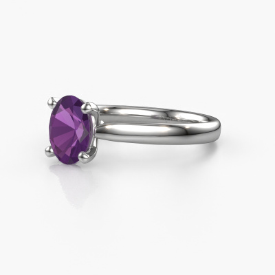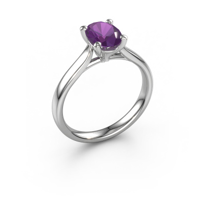 The ring shown above is called the Mignon ovl 1, we call this a solitaire ring because it contains a single gemstone. The engagement ring is made in platinum and has a oval amethyst of 8x6 mm. This traditional platinum solitaire ring with exquisite oval amethyst is a beautiful engagement ring. The open prong setting allows light to strike the gemstone from various angles. The ring also stands out because of the high positioning of the gemstone. Because diamonds symbolize true love and purity, they make the perfect gift for the love of your life. The symbol of eternal love is the centerpiece of this solitaire ring. Like a diamond, all other types of precious metal have their own attributed symbolic meaning. You can compile the solitaire engagement ring yourself in various precious metal combinations. This one has the combination of platinum with platinum. Each piece of jewelry is made by a team of passionate goldsmiths and jewel designers. This will make your crown jewel truly eye-catching.By using a combination of the latest modern techniques, combined with ancient crafting, we can make all our engagement rings in our own studio. Each jewel is made to order. This is advantageous because we can offer you a price you won't find anywhere else.Our designers and goldsmiths work together each day, creating new jewels. Perhaps you have found a nice traditional engagement ring somewhere, which can be used to customize your unique ring. Please feel free to contact us. We will make you an offer, based on a fair price/ quality ratio, which will amaze you.To make it easier for you, we offer a 30 day return policy. Check our terms and conditions.