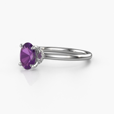 The ring shown above is called the Crystal OVL 3, we call this a solitaire ring because it contains a single gemstone. The engagement ring is made in platinum and has a oval amethyst of 7,5x5,5 mm. This unique platinum solitaire ring with exquisite oval amethyst is a beautiful engagement ring. The open prong setting allows light to strike the gemstone from various angles. The ring also stands out because of the high positioning of the gemstone. Because diamonds symbolize true love and purity, they make the perfect gift for the love of your life. The symbol of eternal love is the centerpiece of this solitaire ring. Like a diamond, all other types of precious metal have their own attributed symbolic meaning. You can compile the solitaire engagement ring yourself in various precious metal combinations. This one has the combination of platinum with platinum. Each piece of jewelry is made just for you by our master goldsmiths in our own studio.After receiving your order, our goldsmiths will passionately start the creative process of making your engagement ring in our own studio. Because we don't have a big stockpile, these costs will not be passed on to you. Our pricing is proof of that! We offer top quality jewels at lowest price, guaranteed.Our designers and goldsmiths work together each day, creating new jewels. Perhaps you have found a nice unique engagement ring somewhere, which can be used to customize your unique ring. Please feel free to contact us. We will make you an offer, based on a fair price/ quality ratio, which will amaze you.To make it easier for you, we offer a 30 day return policy. Check our terms and conditions.