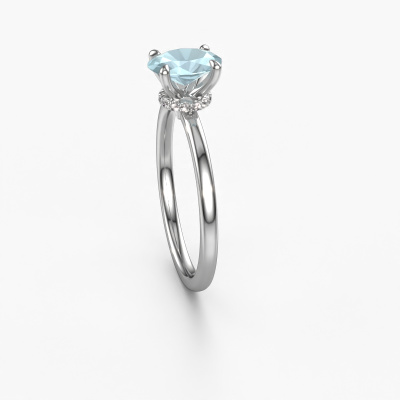 The ring shown above is called the Crystal OVL 3, we call this a solitaire ring because it contains a single gemstone. The engagement ring is made in platinum and has a oval aquamarine of 7,5x5,5 mm. This unique platinum solitaire ring with exquisite oval aquamarine is a beautiful engagement ring. The open prong setting allows light to strike the gemstone from various angles. The ring also stands out because of the high positioning of the gemstone. Because diamonds symbolize true love and purity, they make the perfect gift for the love of your life. The symbol of eternal love is the centerpiece of this solitaire ring. Like a diamond, all other types of precious metal have their own attributed symbolic meaning. You can compile the solitaire engagement ring yourself in various precious metal combinations. This one has the combination of platinum with platinum. Each piece of jewelry is made just for you by our master goldsmiths in our own studio.After receiving your order, our goldsmiths will passionately start the creative process of making your engagement ring in our own studio. Because we don't have a big stockpile, these costs will not be passed on to you. Our pricing is proof of that! We offer top quality jewels at lowest price, guaranteed.Our designers and goldsmiths work together each day, creating new jewels. Perhaps you have found a nice unique engagement ring somewhere, which can be used to customize your unique ring. Please feel free to contact us. We will make you an offer, based on a fair price/ quality ratio, which will amaze you.To make it easier for you, we offer a 30 day return policy. Check our terms and conditions.