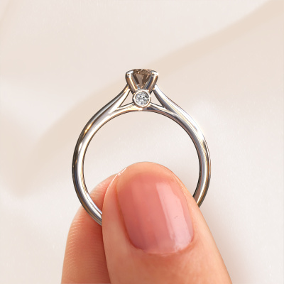 The ring shown above is called the Valorie ovl 1, we call this a solitaire ring because it contains a single gemstone. The engagement ring is made in platinum and has a oval brown diamond of 0.60 crt. This modern platinum solitaire ring with exquisite oval brown diamond is a beautiful engagement ring. The open prong setting allows light to strike the gemstone from various angles. The ring also stands out because of the high positioning of the gemstone. Because diamonds symbolize true love and purity, they make the perfect gift for the love of your life. The symbol of eternal love is the centerpiece of this solitaire ring. Like a diamond, all other types of precious metal have their own attributed symbolic meaning. You can compile the solitaire engagement ring yourself in various precious metal combinations. This one has the combination of platinum with platinum. Each piece of jewelry is made just for you, with attention to detail and design.By using our modern techniques, we can design and customize the finest quality jewels with the utmost care for you. Our engagement rings are always priced 30 percent lower than other jewellers. We make engagement rings to order so we don't have to maintain a large stock. If you have a certain budget, we are more than happy to advice you accordingly.Do you have a specific ring in mind? One you came across somewhere. Please feel free to tell us your wishes and we will turn your design into a unique engagement ring. You can follow the development of your ring design because we use 3D drawings. This gives you a realistic preview of your design. We will gladly send you a non-binding offer, based on a fair price/ quality ratio. It will amaze you.To make it easier for you, we offer a 30 day return policy. Check our terms and conditions.