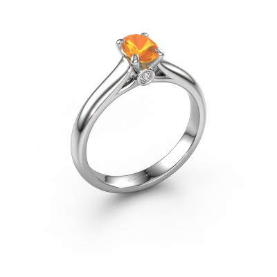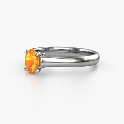 The ring shown above is called the Valorie ovl 1, we call this a solitaire ring because it contains a single gemstone. The engagement ring is made in platinum and has a oval citrin of 6.5x4.5 mm. This modern platinum solitaire ring with exquisite oval citrin is a beautiful engagement ring. The open prong setting allows light to strike the gemstone from various angles. The ring also stands out because of the high positioning of the gemstone. Because diamonds symbolize true love and purity, they make the perfect gift for the love of your life. The symbol of eternal love is the centerpiece of this solitaire ring. Like a diamond, all other types of precious metal have their own attributed symbolic meaning. You can compile the solitaire engagement ring yourself in various precious metal combinations. This one has the combination of platinum with platinum. Each piece of jewelry is made just for you, with attention to detail and design.By using our modern techniques, we can design and customize the finest quality jewels with the utmost care for you. Our engagement rings are always priced 30 percent lower than other jewellers. We make engagement rings to order so we don't have to maintain a large stock. If you have a certain budget, we are more than happy to advice you accordingly.Do you have a specific ring in mind? One you came across somewhere. Please feel free to tell us your wishes and we will turn your design into a unique engagement ring. You can follow the development of your ring design because we use 3D drawings. This gives you a realistic preview of your design. We will gladly send you a non-binding offer, based on a fair price/ quality ratio. It will amaze you.To make it easier for you, we offer a 30 day return policy. Check our terms and conditions.