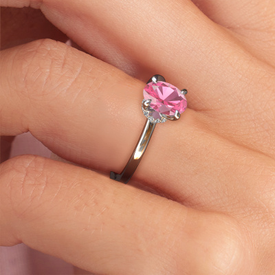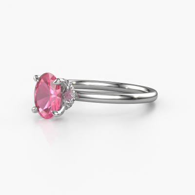 The ring shown above is called the Crystal OVL 3, we call this a solitaire ring because it contains a single gemstone. The engagement ring is made in platinum and has a oval pink sapphire of 7,5x5,5 mm. This unique platinum solitaire ring with exquisite oval pink sapphire is a beautiful engagement ring. The open prong setting allows light to strike the gemstone from various angles. The ring also stands out because of the high positioning of the gemstone. Because diamonds symbolize true love and purity, they make the perfect gift for the love of your life. The symbol of eternal love is the centerpiece of this solitaire ring. Like a diamond, all other types of precious metal have their own attributed symbolic meaning. You can compile the solitaire engagement ring yourself in various precious metal combinations. This one has the combination of platinum with platinum. Each piece of jewelry is made just for you by our master goldsmiths in our own studio.After receiving your order, our goldsmiths will passionately start the creative process of making your engagement ring in our own studio. Because we don't have a big stockpile, these costs will not be passed on to you. Our pricing is proof of that! We offer top quality jewels at lowest price, guaranteed.Our designers and goldsmiths work together each day, creating new jewels. Perhaps you have found a nice unique engagement ring somewhere, which can be used to customize your unique ring. Please feel free to contact us. We will make you an offer, based on a fair price/ quality ratio, which will amaze you.To make it easier for you, we offer a 30 day return policy. Check our terms and conditions.