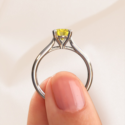 The ring shown above is called the Mignon ovl 1, we call this a solitaire ring because it contains a single gemstone. The engagement ring is made in platinum and has a oval yellow sapphire of 8x6 mm. This traditional platinum solitaire ring with exquisite oval yellow sapphire is a beautiful engagement ring. The open prong setting allows light to strike the gemstone from various angles. The ring also stands out because of the high positioning of the gemstone. Because diamonds symbolize true love and purity, they make the perfect gift for the love of your life. The symbol of eternal love is the centerpiece of this solitaire ring. Like a diamond, all other types of precious metal have their own attributed symbolic meaning. You can compile the solitaire engagement ring yourself in various precious metal combinations. This one has the combination of platinum with platinum. Each piece of jewelry is made by a team of passionate goldsmiths and jewel designers. This will make your crown jewel truly eye-catching.By using a combination of the latest modern techniques, combined with ancient crafting, we can make all our engagement rings in our own studio. Each jewel is made to order. This is advantageous because we can offer you a price you won't find anywhere else.Our designers and goldsmiths work together each day, creating new jewels. Perhaps you have found a nice traditional engagement ring somewhere, which can be used to customize your unique ring. Please feel free to contact us. We will make you an offer, based on a fair price/ quality ratio, which will amaze you.To make it easier for you, we offer a 30 day return policy. Check our terms and conditions.