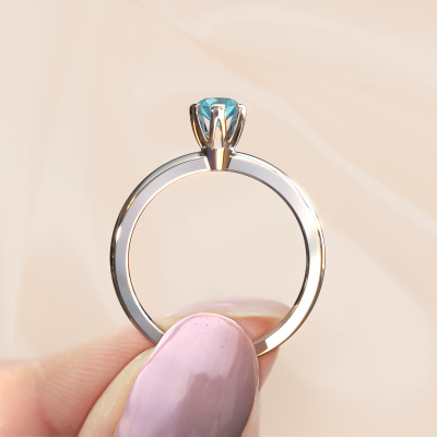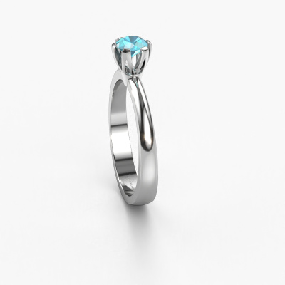 The ring shown above is called the Julia, we call this a solitaire ring because it contains a single gemstone. The engagement ring is made in platinum and has a round blue topaz of 4 mm. This trendy platinum solitaire ring with exquisite round blue topaz is a beautiful engagement ring. The open prong setting allows light to strike the gemstone from various angles. The ring also stands out because of the high positioning of the gemstone. Because diamonds symbolize true love and purity, they make the perfect gift for the love of your life. The symbol of eternal love is the centerpiece of this solitaire ring. Like a diamond, all other types of precious metal have their own attributed symbolic meaning. You can compile the solitaire engagement ring yourself in various precious metal combinations. This one has the combination of platinum with platinum. Each piece of jewelry is created to add sparkle to your finger, each jewel is lovingly made by hand by our goldsmiths.Are you on a budget? Please feel free to contact us, so we can go discuss your options. We offer our engagement rings at guaranteed best price, because we make them to order. You won't find such a price anywhere else!Different styles of new rings are made daily by our team. Perhaps you have found a solitaire engagement ring somewhere. One you would like to give to your loved one. Please feel free to share your thoughts and design with our jewel designers. We would love to turn your design into a trendy engagement ring. You can follow the development of your ring design because we use very detailed 3D drawings. On top of that, you can order a dummy of the design. A dummy is a plastic ring, which can be shaped according your ring design. You can try it on and check if the engagement ring is up to standard. We will gladly send you a non-binding offer, based on a fair price/ quality ratio. The offer will baffle you, considering the quality of the ring and gemstones.To make it easier for you, we offer a 30 day return policy. Check our terms and conditions.