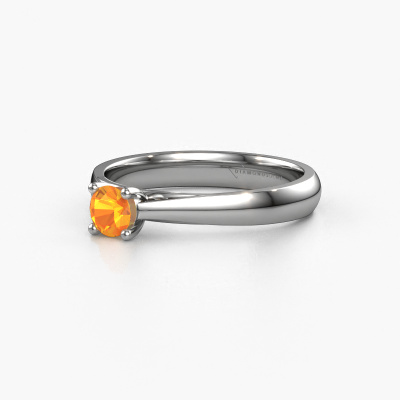 The ring shown above is called the Sam, we call this a solitaire ring because it contains a single gemstone. The engagement ring is made in platinum and has a round citrin of 4.2 mm. This classic platinum solitaire ring with exquisite round citrin is a beautiful engagement ring. The open prong setting allows light to strike the gemstone from various angles. The ring also stands out because of the high positioning of the gemstone. Because diamonds symbolize true love and purity, they make the perfect gift for the love of your life. The symbol of eternal love is the centerpiece of this solitaire ring. Like a diamond, all other types of precious metal have their own attributed symbolic meaning. You can compile the solitaire engagement ring yourself in various precious metal combinations. This one has the combination of platinum with platinum. Each piece of jewelry is made just for you, with attention to detail and design.After receiving your order, our goldsmiths will passionately start the creative process of making your engagement ring in our own studio. Because we don't have a big stockpile, these costs will not be passed on to you. Our pricing is proof of that! We offer top quality jewels at lowest price, guaranteed.Our team adds new designs to our online collection daily. Our designers and goldsmiths work together in creating the best design. We strive to offer a diverse collection of jewels. Perhaps you have a specific jewel design in mind. One you came across somewhere. Please contact us for a free consultation. We will make you an offer, based on a fair price/ quality ratio, that will baffle you.To make it easier for you, we offer a 30 day return policy. Check our terms and conditions.