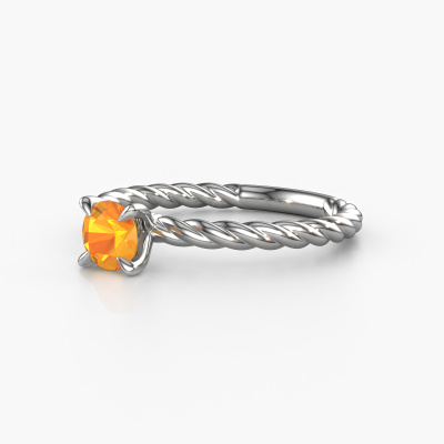 The ring shown above is called the Twanna, we call this a solitaire ring because it contains a single gemstone. The engagement ring is made in platinum and has a round citrin of 5 mm. This fantasy platinum solitaire ring with exquisite round citrin is a beautiful engagement ring. The open prong setting allows light to strike the gemstone from various angles. The ring also stands out because of the high positioning of the gemstone. Because diamonds symbolize true love and purity, they make the perfect gift for the love of your life. The symbol of eternal love is the centerpiece of this solitaire ring. Like a diamond, all other types of precious metal have their own attributed symbolic meaning. You can compile the solitaire engagement ring yourself in various precious metal combinations. This one has the combination of platinum with platinum. Each piece of jewelry is made by a team of passionate goldsmiths and jewel designers. This will make your crown jewel truly eye-catching.After receiving your order, our goldsmiths will passionately start the creative process of making your engagement ring in our own studio. Because we don't have a big stockpile, these costs will not be passed on to you. Our pricing is proof of that! We offer top quality jewels at lowest price, guaranteed.Do you have a specific ring in mind? One you came across somewhere. Please feel free to tell us your wishes and we will turn your design into a unique engagement ring. You can follow the development of your ring design because we use 3D drawings. This gives you a realistic preview of your design. We will gladly send you a non-binding offer, based on a fair price/ quality ratio. It will amaze you.To make it easier for you, we offer a 30 day return policy. Check our terms and conditions.