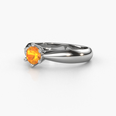 The ring shown above is called the Fay, we call this a solitaire ring because it contains a single gemstone. The engagement ring is made in platinum and has a round citrin of 5 mm. This traditional platinum solitaire ring with exquisite round citrin is a beautiful engagement ring. The open prong setting allows light to strike the gemstone from various angles. The ring also stands out because of the high positioning of the gemstone. Because diamonds symbolize true love and purity, they make the perfect gift for the love of your life. The symbol of eternal love is the centerpiece of this solitaire ring. Like a diamond, all other types of precious metal have their own attributed symbolic meaning. You can compile the solitaire engagement ring yourself in various precious metal combinations. This one has the combination of platinum with platinum. Each piece of jewelry is made just for you by our master goldsmiths in our own studio.By using a combination of the latest modern techniques, combined with ancient crafting, we can make all our engagement rings in our own studio. Each jewel is made to order. This is advantageous because we can offer you a price you won't find anywhere else.Have you found a specific engagement ring somewhere which you would like to give to your loved one? Please feel free to express your wishes to our jewel designers because we would be honoured to turn your design into a traditional engagement ring. You can follow the development of your ring design because we use 3D drawings. This gives you a realistic preview of how your design will look. You can also preorder a dummy. A dummy is a plastic ring, which can be shaped according your ring design. You can try it on and check if its width and size are suitable for you. We will gladly send you a non-binding offer, based on a fair price/ quality ratio. It will amaze you, considering the quality of the ring and gemstones.To make it easier for you, we offer a 30 day return policy. Check our terms and conditions.