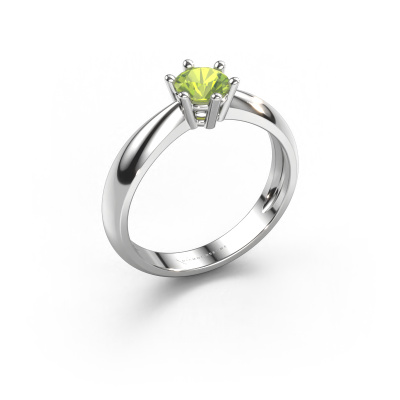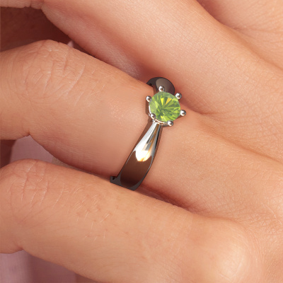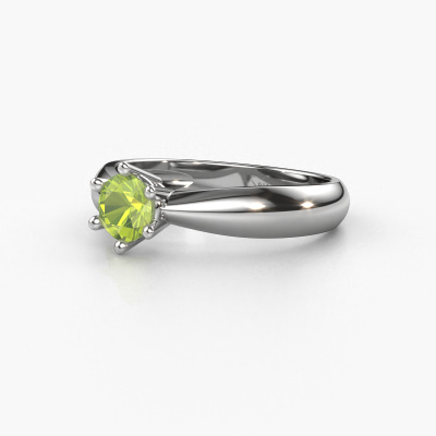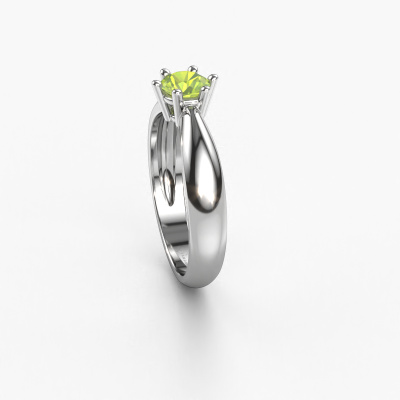 The ring shown above is called the Fay, we call this a solitaire ring because it contains a single gemstone. The engagement ring is made in platinum and has a round peridot of 5 mm. This traditional platinum solitaire ring with exquisite round peridot is a beautiful engagement ring. The open prong setting allows light to strike the gemstone from various angles. The ring also stands out because of the high positioning of the gemstone. Because diamonds symbolize true love and purity, they make the perfect gift for the love of your life. The symbol of eternal love is the centerpiece of this solitaire ring. Like a diamond, all other types of precious metal have their own attributed symbolic meaning. You can compile the solitaire engagement ring yourself in various precious metal combinations. This one has the combination of platinum with platinum. Each piece of jewelry is made just for you by our master goldsmiths in our own studio.By using a combination of the latest modern techniques, combined with ancient crafting, we can make all our engagement rings in our own studio. Each jewel is made to order. This is advantageous because we can offer you a price you won't find anywhere else.Have you found a specific engagement ring somewhere which you would like to give to your loved one? Please feel free to express your wishes to our jewel designers because we would be honoured to turn your design into a traditional engagement ring. You can follow the development of your ring design because we use 3D drawings. This gives you a realistic preview of how your design will look. You can also preorder a dummy. A dummy is a plastic ring, which can be shaped according your ring design. You can try it on and check if its width and size are suitable for you. We will gladly send you a non-binding offer, based on a fair price/ quality ratio. It will amaze you, considering the quality of the ring and gemstones.To make it easier for you, we offer a 30 day return policy. Check our terms and conditions.