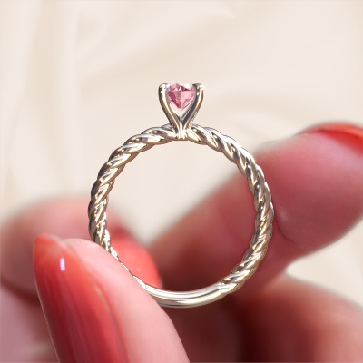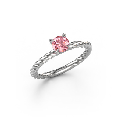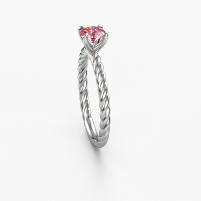 The ring shown above is called the Twanna, we call this a solitaire ring because it contains a single gemstone. The engagement ring is made in platinum and has a round pink lab grown diamond of 5 mm. This fantasy platinum solitaire ring with exquisite round pink lab grown diamond is a beautiful engagement ring. The open prong setting allows light to strike the gemstone from various angles. The ring also stands out because of the high positioning of the gemstone. Because diamonds symbolize true love and purity, they make the perfect gift for the love of your life. The symbol of eternal love is the centerpiece of this solitaire ring. Like a diamond, all other types of precious metal have their own attributed symbolic meaning. You can compile the solitaire engagement ring yourself in various precious metal combinations. This one has the combination of platinum with platinum. Each piece of jewelry is made by a team of passionate goldsmiths and jewel designers. This will make your crown jewel truly eye-catching.After receiving your order, our goldsmiths will passionately start the creative process of making your engagement ring in our own studio. Because we don't have a big stockpile, these costs will not be passed on to you. Our pricing is proof of that! We offer top quality jewels at lowest price, guaranteed.Do you have a specific ring in mind? One you came across somewhere. Please feel free to tell us your wishes and we will turn your design into a unique engagement ring. You can follow the development of your ring design because we use 3D drawings. This gives you a realistic preview of your design. We will gladly send you a non-binding offer, based on a fair price/ quality ratio. It will amaze you.To make it easier for you, we offer a 30 day return policy. Check our terms and conditions.