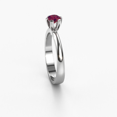 The ring shown above is called the Julia, we call this a solitaire ring because it contains a single gemstone. The engagement ring is made in platinum and has a round rhodolite of 4 mm. This trendy platinum solitaire ring with exquisite round rhodolite is a beautiful engagement ring. The open prong setting allows light to strike the gemstone from various angles. The ring also stands out because of the high positioning of the gemstone. Because diamonds symbolize true love and purity, they make the perfect gift for the love of your life. The symbol of eternal love is the centerpiece of this solitaire ring. Like a diamond, all other types of precious metal have their own attributed symbolic meaning. You can compile the solitaire engagement ring yourself in various precious metal combinations. This one has the combination of platinum with platinum. Each piece of jewelry is created to add sparkle to your finger, each jewel is lovingly made by hand by our goldsmiths.Are you on a budget? Please feel free to contact us, so we can go discuss your options. We offer our engagement rings at guaranteed best price, because we make them to order. You won't find such a price anywhere else!Different styles of new rings are made daily by our team. Perhaps you have found a solitaire engagement ring somewhere. One you would like to give to your loved one. Please feel free to share your thoughts and design with our jewel designers. We would love to turn your design into a trendy engagement ring. You can follow the development of your ring design because we use very detailed 3D drawings. On top of that, you can order a dummy of the design. A dummy is a plastic ring, which can be shaped according your ring design. You can try it on and check if the engagement ring is up to standard. We will gladly send you a non-binding offer, based on a fair price/ quality ratio. The offer will baffle you, considering the quality of the ring and gemstones.To make it easier for you, we offer a 30 day return policy. Check our terms and conditions.