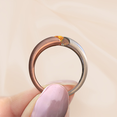 This 14 Carat rose gold ring is called Hojalien 1 and is set with citrin. Do you keep up with the latest fashion trends? Do you want a unique engagement ring that matches your lifestyle? This orb shaped engagement ring is an extraordinary ring which can be custom-made to fit your or her personal style. This modern rose gold engagement ring is set with citrin. Our citrin are carefully selected for this specific ring in order to create the best effect. Our expert goldsmith will create your ring in our own artisan studio where the citrin will be set with great care. The ring will then be polished to perfection. Nothing but the best for the love of your life! This jewel is created to add sparkle to your finger, each jewel is lovingly made by hand by our goldsmiths.After receiving your order, our goldsmiths will passionately start the creative process of making your engagement ring in our own studio. Because we don't have a big stockpile, these costs will not be passed on to you. Our pricing is proof of that! We offer top quality jewels at lowest price, guaranteed.Different styles of new rings are made daily by our team. Perhaps you have found a solitaire engagement ring somewhere. One you would like to give to your loved one. Please feel free to share your thoughts and design with our jewel designers. We would love to turn your design into a modern engagement ring. You can follow the development of your ring design because we use very detailed 3D drawings. On top of that, you can order a dummy of the design. A dummy is a plastic ring, which can be shaped according your ring design. You can try it on and check if the engagement ring is up to standard. We will gladly send you a non-binding offer, based on a fair price/ quality ratio. The offer will baffle you, considering the quality of the ring and gemstones.To make it easier for you, we offer a 30 day return policy. Check our terms and conditions.