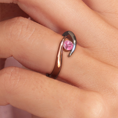 This 14 Carat rose gold ring is called Alaina and is set with pink sapphire. Do you keep up with the latest fashion trends? Do you want a unique engagement ring that matches your lifestyle? This graceful engagement ring is an extraordinary ring which can be custom-made to fit your or her personal style. This modern rose gold engagement ring is set with pink sapphire. Our pink sapphire are carefully selected for this specific ring in order to create the best effect. Our expert goldsmith will create your ring in our own artisan studio where the pink sapphire will be set with great care. The ring will then be polished to perfection. Nothing but the best for the love of your life! This jewel is unique in every way! Simply customize to your likingBy using our modern techniques, we can design and customize the finest quality jewels with the utmost care for you. Our engagement rings are always priced 30 percent lower than other jewellers. We make engagement rings to order so we don't have to maintain a large stock. If you have a certain budget, we are more than happy to advice you accordingly.Our team adds new designs to our online collection daily. Our designers and goldsmiths work together in creating the best design. We strive to offer a diverse collection of jewels. Perhaps you have a specific jewel design in mind. One you came across somewhere. Please contact us for a free consultation. We will make you an offer, based on a fair price/ quality ratio, that will baffle you.To make it easier for you, we offer a 30 day return policy. Check our terms and conditions.