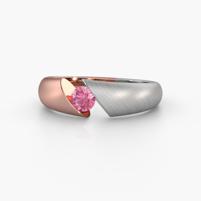 This 14 Carat rose gold ring is called Hojalien 1 and is set with pink sapphire. Do you keep up with the latest fashion trends? Do you want a unique engagement ring that matches your lifestyle? This orb shaped engagement ring is an extraordinary ring which can be custom-made to fit your or her personal style. This modern rose gold engagement ring is set with pink sapphire. Our pink sapphire are carefully selected for this specific ring in order to create the best effect. Our expert goldsmith will create your ring in our own artisan studio where the pink sapphire will be set with great care. The ring will then be polished to perfection. Nothing but the best for the love of your life! This jewel is created to add sparkle to your finger, each jewel is lovingly made by hand by our goldsmiths.After receiving your order, our goldsmiths will passionately start the creative process of making your engagement ring in our own studio. Because we don't have a big stockpile, these costs will not be passed on to you. Our pricing is proof of that! We offer top quality jewels at lowest price, guaranteed.Different styles of new rings are made daily by our team. Perhaps you have found a solitaire engagement ring somewhere. One you would like to give to your loved one. Please feel free to share your thoughts and design with our jewel designers. We would love to turn your design into a modern engagement ring. You can follow the development of your ring design because we use very detailed 3D drawings. On top of that, you can order a dummy of the design. A dummy is a plastic ring, which can be shaped according your ring design. You can try it on and check if the engagement ring is up to standard. We will gladly send you a non-binding offer, based on a fair price/ quality ratio. The offer will baffle you, considering the quality of the ring and gemstones.To make it easier for you, we offer a 30 day return policy. Check our terms and conditions.