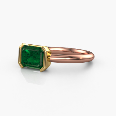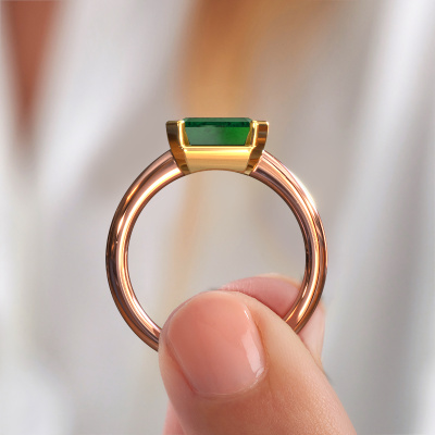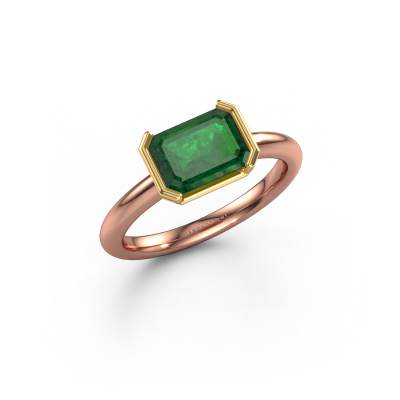 The ring shown above is called the Tayler EME, we call this a solitaire ring because it contains a single gemstone. The engagement ring is made in 14 Carat rose gold and has a emerald cut emerald of 8x6 mm. This modern rose gold solitaire ring with exquisite emerald cut emerald is a beautiful engagement ring. The open prong setting allows light to strike the gemstone from various angles. The ring also stands out because of the high positioning of the gemstone. Because diamonds symbolize true love and purity, they make the perfect gift for the love of your life. The symbol of eternal love is the centerpiece of this solitaire ring. Like a diamond, all other types of precious metal have their own attributed symbolic meaning. You can compile the solitaire engagement ring yourself in various precious metal combinations. This one has the combination of 14 Carat rose gold with gold. Each piece of jewelry is created to add sparkle to your finger, each jewel is lovingly made by hand by our goldsmiths.After receiving your order, our goldsmiths will passionately start the creative process of making your engagement ring in our own studio. Because we don't have a big stockpile, these costs will not be passed on to you. Our pricing is proof of that! We offer top quality jewels at lowest price, guaranteed.Our designers and goldsmiths work together each day, creating new jewels. Perhaps you have found a nice modern engagement ring somewhere, which can be used to customize your unique ring. Please feel free to contact us. We will make you an offer, based on a fair price/ quality ratio, which will amaze you.To make it easier for you, we offer a 30 day return policy. Check our terms and conditions.