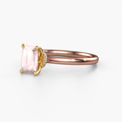 The ring shown above is called the Crystal EME 3, we call this a solitaire ring because it contains a single gemstone. The engagement ring is made in 14 Carat rose gold and has a emerald cut morganite champagne of 7x5 mm. This classic rose gold solitaire ring with exquisite emerald cut morganite champagne is a beautiful engagement ring. The open prong setting allows light to strike the gemstone from various angles. The ring also stands out because of the high positioning of the gemstone. Because diamonds symbolize true love and purity, they make the perfect gift for the love of your life. The symbol of eternal love is the centerpiece of this solitaire ring. Like a diamond, all other types of precious metal have their own attributed symbolic meaning. You can compile the solitaire engagement ring yourself in various precious metal combinations. This one has the combination of 14 Carat rose gold with gold. Each piece of jewelry is made by a team of passionate goldsmiths and jewel designers. This will make your crown jewel truly eye-catching.By using our modern techniques, we can design and customize the finest quality jewels with the utmost care for you. Our engagement rings are always priced 30 percent lower than other jewellers. We make engagement rings to order so we don't have to maintain a large stock. If you have a certain budget, we are more than happy to advice you accordingly.Do you have a specific ring in mind? One you came across somewhere. Please feel free to tell us your wishes and we will turn your design into a unique engagement ring. You can follow the development of your ring design because we use 3D drawings. This gives you a realistic preview of your design. We will gladly send you a non-binding offer, based on a fair price/ quality ratio. It will amaze you.To make it easier for you, we offer a 30 day return policy. Check our terms and conditions.
