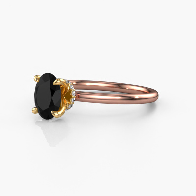 The ring shown above is called the Crystal OVL 3, we call this a solitaire ring because it contains a single gemstone. The engagement ring is made in 14 Carat rose gold and has a oval black diamond of 1.10 crt. This unique rose gold solitaire ring with exquisite oval black diamond is a beautiful engagement ring. The open prong setting allows light to strike the gemstone from various angles. The ring also stands out because of the high positioning of the gemstone. Because diamonds symbolize true love and purity, they make the perfect gift for the love of your life. The symbol of eternal love is the centerpiece of this solitaire ring. Like a diamond, all other types of precious metal have their own attributed symbolic meaning. You can compile the solitaire engagement ring yourself in various precious metal combinations. This one has the combination of 14 Carat rose gold with gold. Each piece of jewelry is made just for you by our master goldsmiths in our own studio.After receiving your order, our goldsmiths will passionately start the creative process of making your engagement ring in our own studio. Because we don't have a big stockpile, these costs will not be passed on to you. Our pricing is proof of that! We offer top quality jewels at lowest price, guaranteed.Our designers and goldsmiths work together each day, creating new jewels. Perhaps you have found a nice unique engagement ring somewhere, which can be used to customize your unique ring. Please feel free to contact us. We will make you an offer, based on a fair price/ quality ratio, which will amaze you.To make it easier for you, we offer a 30 day return policy. Check our terms and conditions.