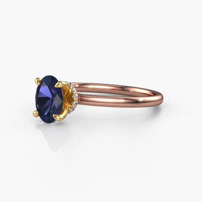 The ring shown above is called the Crystal OVL 3, we call this a solitaire ring because it contains a single gemstone. The engagement ring is made in 14 Carat rose gold and has a oval sapphire of 7,5x5,5 mm. This unique rose gold solitaire ring with exquisite oval sapphire is a beautiful engagement ring. The open prong setting allows light to strike the gemstone from various angles. The ring also stands out because of the high positioning of the gemstone. Because diamonds symbolize true love and purity, they make the perfect gift for the love of your life. The symbol of eternal love is the centerpiece of this solitaire ring. Like a diamond, all other types of precious metal have their own attributed symbolic meaning. You can compile the solitaire engagement ring yourself in various precious metal combinations. This one has the combination of 14 Carat rose gold with gold. Each piece of jewelry is made just for you by our master goldsmiths in our own studio.After receiving your order, our goldsmiths will passionately start the creative process of making your engagement ring in our own studio. Because we don't have a big stockpile, these costs will not be passed on to you. Our pricing is proof of that! We offer top quality jewels at lowest price, guaranteed.Our designers and goldsmiths work together each day, creating new jewels. Perhaps you have found a nice unique engagement ring somewhere, which can be used to customize your unique ring. Please feel free to contact us. We will make you an offer, based on a fair price/ quality ratio, which will amaze you.To make it easier for you, we offer a 30 day return policy. Check our terms and conditions.