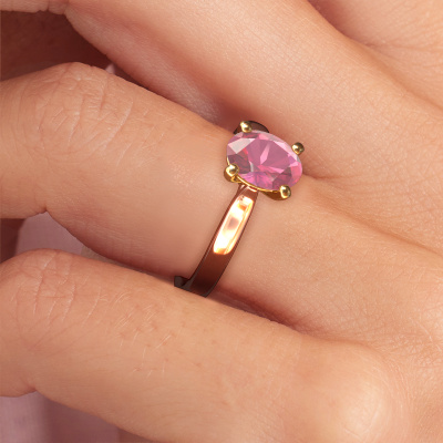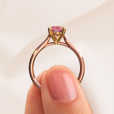 The ring shown above is called the Mignon ovl 1, we call this a solitaire ring because it contains a single gemstone. The engagement ring is made in 14 Carat rose gold and has a oval tourmaline pink of 8x6 mm. This traditional rose gold solitaire ring with exquisite oval tourmaline pink is a beautiful engagement ring. The open prong setting allows light to strike the gemstone from various angles. The ring also stands out because of the high positioning of the gemstone. Because diamonds symbolize true love and purity, they make the perfect gift for the love of your life. The symbol of eternal love is the centerpiece of this solitaire ring. Like a diamond, all other types of precious metal have their own attributed symbolic meaning. You can compile the solitaire engagement ring yourself in various precious metal combinations. This one has the combination of 14 Carat rose gold with gold. Each piece of jewelry is made by a team of passionate goldsmiths and jewel designers. This will make your crown jewel truly eye-catching.By using a combination of the latest modern techniques, combined with ancient crafting, we can make all our engagement rings in our own studio. Each jewel is made to order. This is advantageous because we can offer you a price you won't find anywhere else.Our designers and goldsmiths work together each day, creating new jewels. Perhaps you have found a nice traditional engagement ring somewhere, which can be used to customize your unique ring. Please feel free to contact us. We will make you an offer, based on a fair price/ quality ratio, which will amaze you.To make it easier for you, we offer a 30 day return policy. Check our terms and conditions.