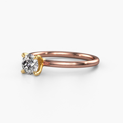 The ring shown above is called the Crystal RND 1, we call this a solitaire ring because it contains a single gemstone. The engagement ring is made in 14 Carat rose gold and has a round diamond of 0.60 crt. This classic rose gold solitaire ring with exquisite round diamond is a beautiful engagement ring. The open prong setting allows light to strike the gemstone from various angles. The ring also stands out because of the high positioning of the gemstone. Because diamonds symbolize true love and purity, they make the perfect gift for the love of your life. The symbol of eternal love is the centerpiece of this solitaire ring. Like a diamond, all other types of precious metal have their own attributed symbolic meaning. You can compile the solitaire engagement ring yourself in various precious metal combinations. This one has the combination of 14 Carat rose gold with gold. Each piece of jewelry is made by a team of passionate goldsmiths and jewel designers. This will make your crown jewel truly eye-catching.After receiving your order, our goldsmiths will passionately start the creative process of making your engagement ring in our own studio. Because we don't have a big stockpile, these costs will not be passed on to you. Our pricing is proof of that! We offer top quality jewels at lowest price, guaranteed.Do you have a specific ring in mind? One you came across somewhere. Please feel free to tell us your wishes and we will turn your design into a unique engagement ring. You can follow the development of your ring design because we use 3D drawings. This gives you a realistic preview of your design. We will gladly send you a non-binding offer, based on a fair price/ quality ratio. It will amaze you.To make it easier for you, we offer a 30 day return policy. Check our terms and conditions.