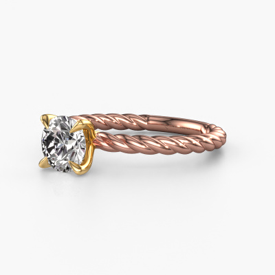 The ring shown above is called the Twanna, we call this a solitaire ring because it contains a single gemstone. The engagement ring is made in 14 Carat rose gold and has a round diamond of 1.00 crt. This fantasy rose gold solitaire ring with exquisite round diamond is a beautiful engagement ring. The open prong setting allows light to strike the gemstone from various angles. The ring also stands out because of the high positioning of the gemstone. Because diamonds symbolize true love and purity, they make the perfect gift for the love of your life. The symbol of eternal love is the centerpiece of this solitaire ring. Like a diamond, all other types of precious metal have their own attributed symbolic meaning. You can compile the solitaire engagement ring yourself in various precious metal combinations. This one has the combination of 14 Carat rose gold with gold. Each piece of jewelry is made by a team of passionate goldsmiths and jewel designers. This will make your crown jewel truly eye-catching.After receiving your order, our goldsmiths will passionately start the creative process of making your engagement ring in our own studio. Because we don't have a big stockpile, these costs will not be passed on to you. Our pricing is proof of that! We offer top quality jewels at lowest price, guaranteed.Do you have a specific ring in mind? One you came across somewhere. Please feel free to tell us your wishes and we will turn your design into a unique engagement ring. You can follow the development of your ring design because we use 3D drawings. This gives you a realistic preview of your design. We will gladly send you a non-binding offer, based on a fair price/ quality ratio. It will amaze you.To make it easier for you, we offer a 30 day return policy. Check our terms and conditions.