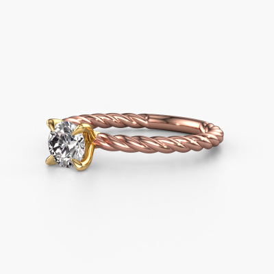 The ring shown above is called the Twanna, we call this a solitaire ring because it contains a single gemstone. The engagement ring is made in 14 Carat rose gold and has a round diamond of 0.60 crt. This fantasy rose gold solitaire ring with exquisite round diamond is a beautiful engagement ring. The open prong setting allows light to strike the gemstone from various angles. The ring also stands out because of the high positioning of the gemstone. Because diamonds symbolize true love and purity, they make the perfect gift for the love of your life. The symbol of eternal love is the centerpiece of this solitaire ring. Like a diamond, all other types of precious metal have their own attributed symbolic meaning. You can compile the solitaire engagement ring yourself in various precious metal combinations. This one has the combination of 14 Carat rose gold with gold. Each piece of jewelry is made by a team of passionate goldsmiths and jewel designers. This will make your crown jewel truly eye-catching.After receiving your order, our goldsmiths will passionately start the creative process of making your engagement ring in our own studio. Because we don't have a big stockpile, these costs will not be passed on to you. Our pricing is proof of that! We offer top quality jewels at lowest price, guaranteed.Do you have a specific ring in mind? One you came across somewhere. Please feel free to tell us your wishes and we will turn your design into a unique engagement ring. You can follow the development of your ring design because we use 3D drawings. This gives you a realistic preview of your design. We will gladly send you a non-binding offer, based on a fair price/ quality ratio. It will amaze you.To make it easier for you, we offer a 30 day return policy. Check our terms and conditions.