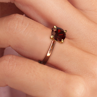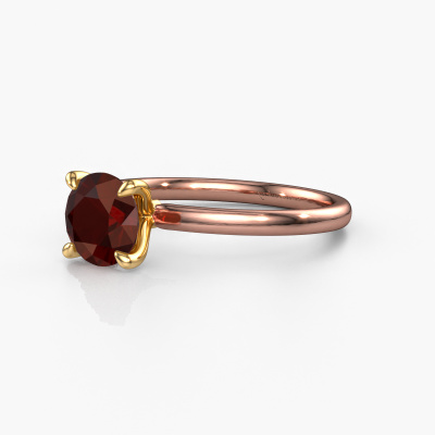 The ring shown above is called the Crystal RND 1, we call this a solitaire ring because it contains a single gemstone. The engagement ring is made in 14 Carat rose gold and has a round garnet of 6.8 mm. This classic rose gold solitaire ring with exquisite round garnet is a beautiful engagement ring. The open prong setting allows light to strike the gemstone from various angles. The ring also stands out because of the high positioning of the gemstone. Because diamonds symbolize true love and purity, they make the perfect gift for the love of your life. The symbol of eternal love is the centerpiece of this solitaire ring. Like a diamond, all other types of precious metal have their own attributed symbolic meaning. You can compile the solitaire engagement ring yourself in various precious metal combinations. This one has the combination of 14 Carat rose gold with gold. Each piece of jewelry is made by a team of passionate goldsmiths and jewel designers. This will make your crown jewel truly eye-catching.After receiving your order, our goldsmiths will passionately start the creative process of making your engagement ring in our own studio. Because we don't have a big stockpile, these costs will not be passed on to you. Our pricing is proof of that! We offer top quality jewels at lowest price, guaranteed.Do you have a specific ring in mind? One you came across somewhere. Please feel free to tell us your wishes and we will turn your design into a unique engagement ring. You can follow the development of your ring design because we use 3D drawings. This gives you a realistic preview of your design. We will gladly send you a non-binding offer, based on a fair price/ quality ratio. It will amaze you.To make it easier for you, we offer a 30 day return policy. Check our terms and conditions.