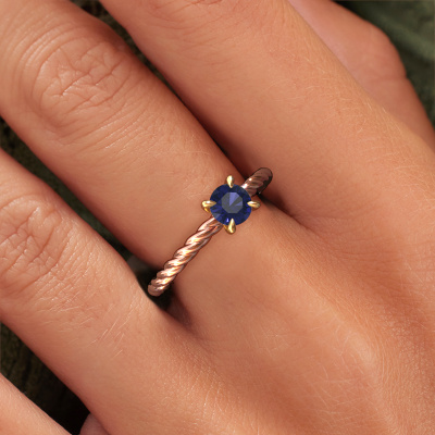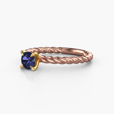 The ring shown above is called the Twanna, we call this a solitaire ring because it contains a single gemstone. The engagement ring is made in 14 Carat rose gold and has a round sapphire of 5 mm. This fantasy rose gold solitaire ring with exquisite round sapphire is a beautiful engagement ring. The open prong setting allows light to strike the gemstone from various angles. The ring also stands out because of the high positioning of the gemstone. Because diamonds symbolize true love and purity, they make the perfect gift for the love of your life. The symbol of eternal love is the centerpiece of this solitaire ring. Like a diamond, all other types of precious metal have their own attributed symbolic meaning. You can compile the solitaire engagement ring yourself in various precious metal combinations. This one has the combination of 14 Carat rose gold with gold. Each piece of jewelry is made by a team of passionate goldsmiths and jewel designers. This will make your crown jewel truly eye-catching.After receiving your order, our goldsmiths will passionately start the creative process of making your engagement ring in our own studio. Because we don't have a big stockpile, these costs will not be passed on to you. Our pricing is proof of that! We offer top quality jewels at lowest price, guaranteed.Do you have a specific ring in mind? One you came across somewhere. Please feel free to tell us your wishes and we will turn your design into a unique engagement ring. You can follow the development of your ring design because we use 3D drawings. This gives you a realistic preview of your design. We will gladly send you a non-binding offer, based on a fair price/ quality ratio. It will amaze you.To make it easier for you, we offer a 30 day return policy. Check our terms and conditions.