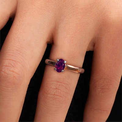 The ring shown above is called the Valorie ovl 1, we call this a solitaire ring because it contains a single gemstone. The engagement ring is made in 14 Carat rose gold and has a oval rhodolite of 6.5x4.5 mm. This modern rose gold solitaire ring with exquisite oval rhodolite is a beautiful engagement ring. The open prong setting allows light to strike the gemstone from various angles. The ring also stands out because of the high positioning of the gemstone. Because diamonds symbolize true love and purity, they make the perfect gift for the love of your life. The symbol of eternal love is the centerpiece of this solitaire ring. Like a diamond, all other types of precious metal have their own attributed symbolic meaning. You can compile the solitaire engagement ring yourself in various precious metal combinations. This one has the combination of 14 Carat rose gold with white gold. Each piece of jewelry is made just for you, with attention to detail and design.By using our modern techniques, we can design and customize the finest quality jewels with the utmost care for you. Our engagement rings are always priced 30 percent lower than other jewellers. We make engagement rings to order so we don't have to maintain a large stock. If you have a certain budget, we are more than happy to advice you accordingly.Do you have a specific ring in mind? One you came across somewhere. Please feel free to tell us your wishes and we will turn your design into a unique engagement ring. You can follow the development of your ring design because we use 3D drawings. This gives you a realistic preview of your design. We will gladly send you a non-binding offer, based on a fair price/ quality ratio. It will amaze you.To make it easier for you, we offer a 30 day return policy. Check our terms and conditions.