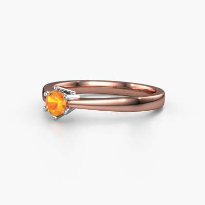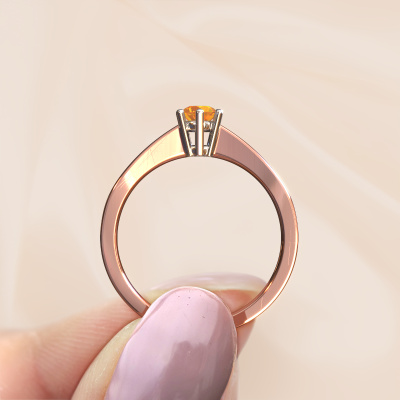 The ring shown above is called the Noortje, we call this a solitaire ring because it contains a single gemstone. The engagement ring is made in 14 Carat rose gold and has a round citrin of 4 mm. This classic rose gold solitaire ring with exquisite round citrin is a beautiful engagement ring. The open prong setting allows light to strike the gemstone from various angles. The ring also stands out because of the high positioning of the gemstone. Because diamonds symbolize true love and purity, they make the perfect gift for the love of your life. The symbol of eternal love is the centerpiece of this solitaire ring. Like a diamond, all other types of precious metal have their own attributed symbolic meaning. You can compile the solitaire engagement ring yourself in various precious metal combinations. This one has the combination of 14 Carat rose gold with white gold. Each piece of jewelry is made by a team of passionate goldsmiths and jewel designers. This will make your crown jewel truly eye-catching.By using a combination of the latest modern techniques, combined with ancient crafting, we can make all our engagement rings in our own studio. Each jewel is made to order. This is advantageous because we can offer you a price you won't find anywhere else.Our team adds new designs to our online collection daily. Our designers and goldsmiths work together in creating the best design. We strive to offer a diverse collection of jewels. Perhaps you have a specific jewel design in mind. One you came across somewhere. Please contact us for a free consultation. We will make you an offer, based on a fair price/ quality ratio, that will baffle you.To make it easier for you, we offer a 30 day return policy. Check our terms and conditions.