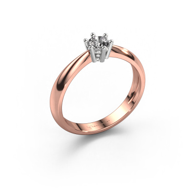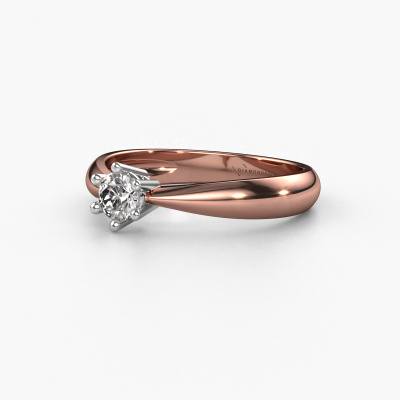 The ring shown above is called the Fay, we call this a solitaire ring because it contains a single gemstone. The engagement ring is made in 14 Carat rose gold and has a round diamond of 0.25 crt. This traditional rose gold solitaire ring with exquisite round diamond is a beautiful engagement ring. The open prong setting allows light to strike the gemstone from various angles. The ring also stands out because of the high positioning of the gemstone. Because diamonds symbolize true love and purity, they make the perfect gift for the love of your life. The symbol of eternal love is the centerpiece of this solitaire ring. Like a diamond, all other types of precious metal have their own attributed symbolic meaning. You can compile the solitaire engagement ring yourself in various precious metal combinations. This one has the combination of 14 Carat rose gold with white gold. Each piece of jewelry is made just for you by our master goldsmiths in our own studio.By using a combination of the latest modern techniques, combined with ancient crafting, we can make all our engagement rings in our own studio. Each jewel is made to order. This is advantageous because we can offer you a price you won't find anywhere else.Have you found a specific engagement ring somewhere which you would like to give to your loved one? Please feel free to express your wishes to our jewel designers because we would be honoured to turn your design into a traditional engagement ring. You can follow the development of your ring design because we use 3D drawings. This gives you a realistic preview of how your design will look. You can also preorder a dummy. A dummy is a plastic ring, which can be shaped according your ring design. You can try it on and check if its width and size are suitable for you. We will gladly send you a non-binding offer, based on a fair price/ quality ratio. It will amaze you, considering the quality of the ring and gemstones.To make it easier for you, we offer a 30 day return policy. Check our terms and conditions.