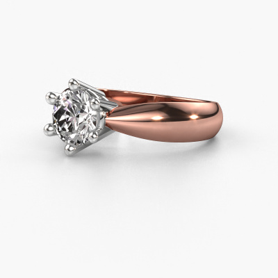 The ring shown above is called the Fay, we call this a solitaire ring because it contains a single gemstone. The engagement ring is made in 14 Carat rose gold and has a round diamond of 1.00 crt. This traditional rose gold solitaire ring with exquisite round diamond is a beautiful engagement ring. The open prong setting allows light to strike the gemstone from various angles. The ring also stands out because of the high positioning of the gemstone. Because diamonds symbolize true love and purity, they make the perfect gift for the love of your life. The symbol of eternal love is the centerpiece of this solitaire ring. Like a diamond, all other types of precious metal have their own attributed symbolic meaning. You can compile the solitaire engagement ring yourself in various precious metal combinations. This one has the combination of 14 Carat rose gold with white gold. Each piece of jewelry is made just for you by our master goldsmiths in our own studio.By using a combination of the latest modern techniques, combined with ancient crafting, we can make all our engagement rings in our own studio. Each jewel is made to order. This is advantageous because we can offer you a price you won't find anywhere else.Have you found a specific engagement ring somewhere which you would like to give to your loved one? Please feel free to express your wishes to our jewel designers because we would be honoured to turn your design into a traditional engagement ring. You can follow the development of your ring design because we use 3D drawings. This gives you a realistic preview of how your design will look. You can also preorder a dummy. A dummy is a plastic ring, which can be shaped according your ring design. You can try it on and check if its width and size are suitable for you. We will gladly send you a non-binding offer, based on a fair price/ quality ratio. It will amaze you, considering the quality of the ring and gemstones.To make it easier for you, we offer a 30 day return policy. Check our terms and conditions.