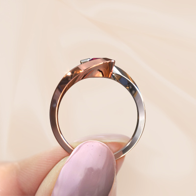 The ring shown above is called the Sheryl, we call this a solitaire ring because it contains a single gemstone. The engagement ring is made in 14 Carat rose gold and has a round rhodolite of 3.7 mm. This contemporary rose gold solitaire ring with exquisite round rhodolite is a beautiful engagement ring. The open prong setting allows light to strike the gemstone from various angles. The ring also stands out because of the high positioning of the gemstone. Because diamonds symbolize true love and purity, they make the perfect gift for the love of your life. The symbol of eternal love is the centerpiece of this solitaire ring. Like a diamond, all other types of precious metal have their own attributed symbolic meaning. You can compile the solitaire engagement ring yourself in various precious metal combinations. This one has the combination of 14 Carat rose gold with white gold. Each piece of jewelry is unique in every way! Simply customize to your likingBy using our modern techniques, we can design and customize the finest quality jewels with the utmost care for you. Our engagement rings are always priced 30 percent lower than other jewellers. We make engagement rings to order so we don't have to maintain a large stock. If you have a certain budget, we are more than happy to advice you accordingly.Our team adds new designs to our online collection daily. Our designers and goldsmiths work together in creating the best design. We strive to offer a diverse collection of jewels. Perhaps you have a specific jewel design in mind. One you came across somewhere. Please contact us for a free consultation. We will make you an offer, based on a fair price/ quality ratio, that will baffle you.To make it easier for you, we offer a 30 day return policy. Check our terms and conditions.
