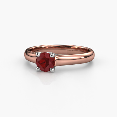 The ring shown above is called the Valorie RND 1, we call this a solitaire ring because it contains a single gemstone. The engagement ring is made in 14 Carat rose gold and has a round ruby of 5 mm. This modern rose gold solitaire ring with exquisite round ruby is a beautiful engagement ring. The open prong setting allows light to strike the gemstone from various angles. The ring also stands out because of the high positioning of the gemstone. Because diamonds symbolize true love and purity, they make the perfect gift for the love of your life. The symbol of eternal love is the centerpiece of this solitaire ring. Like a diamond, all other types of precious metal have their own attributed symbolic meaning. You can compile the solitaire engagement ring yourself in various precious metal combinations. This one has the combination of 14 Carat rose gold with white gold. Each piece of jewelry is made just for you, with attention to detail and design.By using our modern techniques, we can design and customize the finest quality jewels with the utmost care for you. Our engagement rings are always priced 30 percent lower than other jewellers. We make engagement rings to order so we don't have to maintain a large stock. If you have a certain budget, we are more than happy to advice you accordingly.Do you have a specific ring in mind? One you came across somewhere. Please feel free to tell us your wishes and we will turn your design into a unique engagement ring. You can follow the development of your ring design because we use 3D drawings. This gives you a realistic preview of your design. We will gladly send you a non-binding offer, based on a fair price/ quality ratio. It will amaze you.To make it easier for you, we offer a 30 day return policy. Check our terms and conditions.