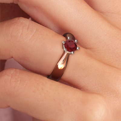 The ring shown above is called the Fay, we call this a solitaire ring because it contains a single gemstone. The engagement ring is made in 14 Carat rose gold and has a round ruby of 5 mm. This traditional rose gold solitaire ring with exquisite round ruby is a beautiful engagement ring. The open prong setting allows light to strike the gemstone from various angles. The ring also stands out because of the high positioning of the gemstone. Because diamonds symbolize true love and purity, they make the perfect gift for the love of your life. The symbol of eternal love is the centerpiece of this solitaire ring. Like a diamond, all other types of precious metal have their own attributed symbolic meaning. You can compile the solitaire engagement ring yourself in various precious metal combinations. This one has the combination of 14 Carat rose gold with white gold. Each piece of jewelry is made just for you by our master goldsmiths in our own studio.By using a combination of the latest modern techniques, combined with ancient crafting, we can make all our engagement rings in our own studio. Each jewel is made to order. This is advantageous because we can offer you a price you won't find anywhere else.Have you found a specific engagement ring somewhere which you would like to give to your loved one? Please feel free to express your wishes to our jewel designers because we would be honoured to turn your design into a traditional engagement ring. You can follow the development of your ring design because we use 3D drawings. This gives you a realistic preview of how your design will look. You can also preorder a dummy. A dummy is a plastic ring, which can be shaped according your ring design. You can try it on and check if its width and size are suitable for you. We will gladly send you a non-binding offer, based on a fair price/ quality ratio. It will amaze you, considering the quality of the ring and gemstones.To make it easier for you, we offer a 30 day return policy. Check our terms and conditions.