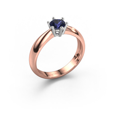 The ring shown above is called the Fay, we call this a solitaire ring because it contains a single gemstone. The engagement ring is made in 14 Carat rose gold and has a round sapphire of 5 mm. This traditional rose gold solitaire ring with exquisite round sapphire is a beautiful engagement ring. The open prong setting allows light to strike the gemstone from various angles. The ring also stands out because of the high positioning of the gemstone. Because diamonds symbolize true love and purity, they make the perfect gift for the love of your life. The symbol of eternal love is the centerpiece of this solitaire ring. Like a diamond, all other types of precious metal have their own attributed symbolic meaning. You can compile the solitaire engagement ring yourself in various precious metal combinations. This one has the combination of 14 Carat rose gold with white gold. Each piece of jewelry is made just for you by our master goldsmiths in our own studio.By using a combination of the latest modern techniques, combined with ancient crafting, we can make all our engagement rings in our own studio. Each jewel is made to order. This is advantageous because we can offer you a price you won't find anywhere else.Have you found a specific engagement ring somewhere which you would like to give to your loved one? Please feel free to express your wishes to our jewel designers because we would be honoured to turn your design into a traditional engagement ring. You can follow the development of your ring design because we use 3D drawings. This gives you a realistic preview of how your design will look. You can also preorder a dummy. A dummy is a plastic ring, which can be shaped according your ring design. You can try it on and check if its width and size are suitable for you. We will gladly send you a non-binding offer, based on a fair price/ quality ratio. It will amaze you, considering the quality of the ring and gemstones.To make it easier for you, we offer a 30 day return policy. Check our terms and conditions.