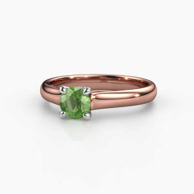 The ring shown above is called the Valorie RND 1, we call this a solitaire ring because it contains a single gemstone. The engagement ring is made in 14 Carat rose gold and has a round tourmaline green of 5 mm. This modern rose gold solitaire ring with exquisite round tourmaline green is a beautiful engagement ring. The open prong setting allows light to strike the gemstone from various angles. The ring also stands out because of the high positioning of the gemstone. Because diamonds symbolize true love and purity, they make the perfect gift for the love of your life. The symbol of eternal love is the centerpiece of this solitaire ring. Like a diamond, all other types of precious metal have their own attributed symbolic meaning. You can compile the solitaire engagement ring yourself in various precious metal combinations. This one has the combination of 14 Carat rose gold with white gold. Each piece of jewelry is made just for you, with attention to detail and design.By using our modern techniques, we can design and customize the finest quality jewels with the utmost care for you. Our engagement rings are always priced 30 percent lower than other jewellers. We make engagement rings to order so we don't have to maintain a large stock. If you have a certain budget, we are more than happy to advice you accordingly.Do you have a specific ring in mind? One you came across somewhere. Please feel free to tell us your wishes and we will turn your design into a unique engagement ring. You can follow the development of your ring design because we use 3D drawings. This gives you a realistic preview of your design. We will gladly send you a non-binding offer, based on a fair price/ quality ratio. It will amaze you.To make it easier for you, we offer a 30 day return policy. Check our terms and conditions.