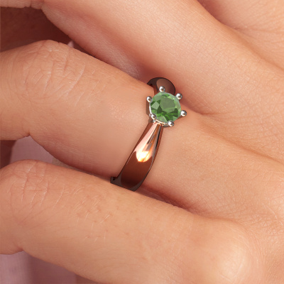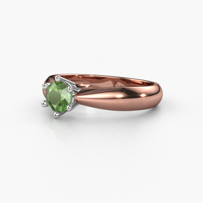 The ring shown above is called the Fay, we call this a solitaire ring because it contains a single gemstone. The engagement ring is made in 14 Carat rose gold and has a round tourmaline green of 5 mm. This traditional rose gold solitaire ring with exquisite round tourmaline green is a beautiful engagement ring. The open prong setting allows light to strike the gemstone from various angles. The ring also stands out because of the high positioning of the gemstone. Because diamonds symbolize true love and purity, they make the perfect gift for the love of your life. The symbol of eternal love is the centerpiece of this solitaire ring. Like a diamond, all other types of precious metal have their own attributed symbolic meaning. You can compile the solitaire engagement ring yourself in various precious metal combinations. This one has the combination of 14 Carat rose gold with white gold. Each piece of jewelry is made just for you by our master goldsmiths in our own studio.By using a combination of the latest modern techniques, combined with ancient crafting, we can make all our engagement rings in our own studio. Each jewel is made to order. This is advantageous because we can offer you a price you won't find anywhere else.Have you found a specific engagement ring somewhere which you would like to give to your loved one? Please feel free to express your wishes to our jewel designers because we would be honoured to turn your design into a traditional engagement ring. You can follow the development of your ring design because we use 3D drawings. This gives you a realistic preview of how your design will look. You can also preorder a dummy. A dummy is a plastic ring, which can be shaped according your ring design. You can try it on and check if its width and size are suitable for you. We will gladly send you a non-binding offer, based on a fair price/ quality ratio. It will amaze you, considering the quality of the ring and gemstones.To make it easier for you, we offer a 30 day return policy. Check our terms and conditions.