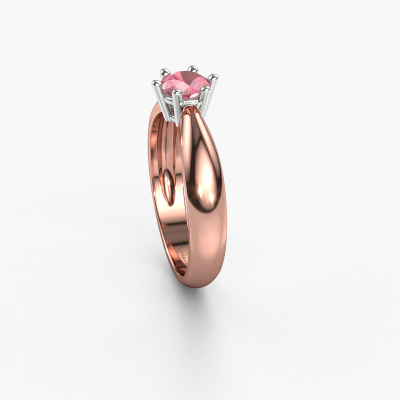 The ring shown above is called the Fay, we call this a solitaire ring because it contains a single gemstone. The engagement ring is made in 14 Carat rose gold and has a round tourmaline pink of 5 mm. This traditional rose gold solitaire ring with exquisite round tourmaline pink is a beautiful engagement ring. The open prong setting allows light to strike the gemstone from various angles. The ring also stands out because of the high positioning of the gemstone. Because diamonds symbolize true love and purity, they make the perfect gift for the love of your life. The symbol of eternal love is the centerpiece of this solitaire ring. Like a diamond, all other types of precious metal have their own attributed symbolic meaning. You can compile the solitaire engagement ring yourself in various precious metal combinations. This one has the combination of 14 Carat rose gold with white gold. Each piece of jewelry is made just for you by our master goldsmiths in our own studio.By using a combination of the latest modern techniques, combined with ancient crafting, we can make all our engagement rings in our own studio. Each jewel is made to order. This is advantageous because we can offer you a price you won't find anywhere else.Have you found a specific engagement ring somewhere which you would like to give to your loved one? Please feel free to express your wishes to our jewel designers because we would be honoured to turn your design into a traditional engagement ring. You can follow the development of your ring design because we use 3D drawings. This gives you a realistic preview of how your design will look. You can also preorder a dummy. A dummy is a plastic ring, which can be shaped according your ring design. You can try it on and check if its width and size are suitable for you. We will gladly send you a non-binding offer, based on a fair price/ quality ratio. It will amaze you, considering the quality of the ring and gemstones.To make it easier for you, we offer a 30 day return policy. Check our terms and conditions.