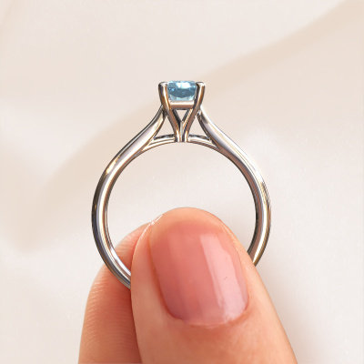 This 14 Carat white gold ring is called Mignon rad 1 and is set with blue lab grown diamond. Do you keep up with the latest fashion trends? Do you want a unique engagement ring that matches your lifestyle? This narrow engagement ring is an extraordinary ring which can be custom-made to fit your or her personal style. This fashionable white gold engagement ring is set with blue lab grown diamond. Our blue lab grown diamonds are carefully selected for this specific ring in order to create the best effect. Our expert goldsmith will create your ring in our own artisan studio where the blue lab grown diamond will be set with great care. The ring will then be polished to perfection. Nothing but the best for the love of your life! This jewel is created to add sparkle to your finger, each jewel is lovingly made by hand by our goldsmiths.After receiving your order, our goldsmiths will start the creative process of making your Mignon rad 1 engagement ring. We don't keep stock. This is advantageous because these costs will not be passed on to you. Therefore, we can offer jewellery at exceptionally low prices.Our team adds new designs to our online collection daily. Our designers and goldsmiths work together in creating the best design. We strive to offer a diverse collection of jewels. Perhaps you have a specific jewel design in mind. One you came across somewhere. Please contact us for a free consultation. We will make you an offer, based on a fair price/ quality ratio, that will baffle you.To make it easier for you, we offer a 30 day return policy. Check our terms and conditions.