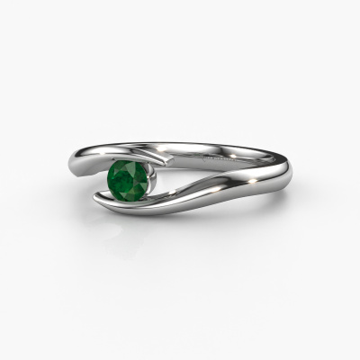 This 14 Carat white gold ring is called Alaina and is set with emerald. Do you keep up with the latest fashion trends? Do you want a unique engagement ring that matches your lifestyle? This graceful engagement ring is an extraordinary ring which can be custom-made to fit your or her personal style. This modern white gold engagement ring is set with emerald. Our emerald are carefully selected for this specific ring in order to create the best effect. Our expert goldsmith will create your ring in our own artisan studio where the emerald will be set with great care. The ring will then be polished to perfection. Nothing but the best for the love of your life! This jewel is unique in every way! Simply customize to your likingBy using our modern techniques, we can design and customize the finest quality jewels with the utmost care for you. Our engagement rings are always priced 30 percent lower than other jewellers. We make engagement rings to order so we don't have to maintain a large stock. If you have a certain budget, we are more than happy to advice you accordingly.Our team adds new designs to our online collection daily. Our designers and goldsmiths work together in creating the best design. We strive to offer a diverse collection of jewels. Perhaps you have a specific jewel design in mind. One you came across somewhere. Please contact us for a free consultation. We will make you an offer, based on a fair price/ quality ratio, that will baffle you.To make it easier for you, we offer a 30 day return policy. Check our terms and conditions.