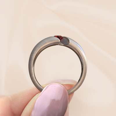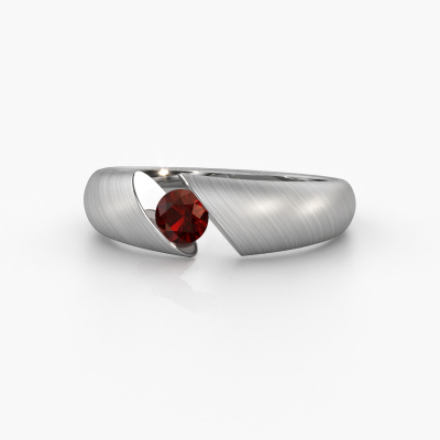 This 14 Carat white gold ring is called Hojalien 1 and is set with garnet. Do you keep up with the latest fashion trends? Do you want a unique engagement ring that matches your lifestyle? This orb shaped engagement ring is an extraordinary ring which can be custom-made to fit your or her personal style. This modern white gold engagement ring is set with garnet. Our garnet are carefully selected for this specific ring in order to create the best effect. Our expert goldsmith will create your ring in our own artisan studio where the garnet will be set with great care. The ring will then be polished to perfection. Nothing but the best for the love of your life! This jewel is created to add sparkle to your finger, each jewel is lovingly made by hand by our goldsmiths.After receiving your order, our goldsmiths will passionately start the creative process of making your engagement ring in our own studio. Because we don't have a big stockpile, these costs will not be passed on to you. Our pricing is proof of that! We offer top quality jewels at lowest price, guaranteed.Different styles of new rings are made daily by our team. Perhaps you have found a solitaire engagement ring somewhere. One you would like to give to your loved one. Please feel free to share your thoughts and design with our jewel designers. We would love to turn your design into a modern engagement ring. You can follow the development of your ring design because we use very detailed 3D drawings. On top of that, you can order a dummy of the design. A dummy is a plastic ring, which can be shaped according your ring design. You can try it on and check if the engagement ring is up to standard. We will gladly send you a non-binding offer, based on a fair price/ quality ratio. The offer will baffle you, considering the quality of the ring and gemstones.To make it easier for you, we offer a 30 day return policy. Check our terms and conditions.