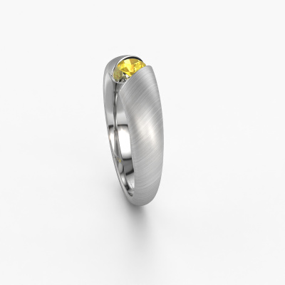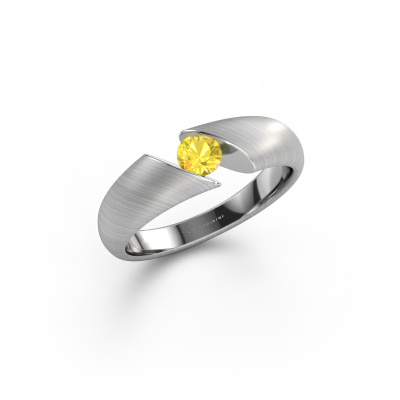 This 14 Carat white gold ring is called Hojalien 1 and is set with yellow sapphire. Do you keep up with the latest fashion trends? Do you want a unique engagement ring that matches your lifestyle? This orb shaped engagement ring is an extraordinary ring which can be custom-made to fit your or her personal style. This modern white gold engagement ring is set with yellow sapphire. Our yellow sapphire are carefully selected for this specific ring in order to create the best effect. Our expert goldsmith will create your ring in our own artisan studio where the yellow sapphire will be set with great care. The ring will then be polished to perfection. Nothing but the best for the love of your life! This jewel is created to add sparkle to your finger, each jewel is lovingly made by hand by our goldsmiths.After receiving your order, our goldsmiths will passionately start the creative process of making your engagement ring in our own studio. Because we don't have a big stockpile, these costs will not be passed on to you. Our pricing is proof of that! We offer top quality jewels at lowest price, guaranteed.Different styles of new rings are made daily by our team. Perhaps you have found a solitaire engagement ring somewhere. One you would like to give to your loved one. Please feel free to share your thoughts and design with our jewel designers. We would love to turn your design into a modern engagement ring. You can follow the development of your ring design because we use very detailed 3D drawings. On top of that, you can order a dummy of the design. A dummy is a plastic ring, which can be shaped according your ring design. You can try it on and check if the engagement ring is up to standard. We will gladly send you a non-binding offer, based on a fair price/ quality ratio. The offer will baffle you, considering the quality of the ring and gemstones.To make it easier for you, we offer a 30 day return policy. Check our terms and conditions.