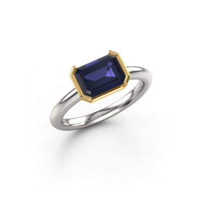 The ring shown above is called the Tayler EME, we call this a solitaire ring because it contains a single gemstone. The engagement ring is made in 14 Carat white gold and has a emerald cut sapphire of 8x6 mm. This modern white gold solitaire ring with exquisite emerald cut sapphire is a beautiful engagement ring. The open prong setting allows light to strike the gemstone from various angles. The ring also stands out because of the high positioning of the gemstone. Because diamonds symbolize true love and purity, they make the perfect gift for the love of your life. The symbol of eternal love is the centerpiece of this solitaire ring. Like a diamond, all other types of precious metal have their own attributed symbolic meaning. You can compile the solitaire engagement ring yourself in various precious metal combinations. This one has the combination of 14 Carat white gold with gold. Each piece of jewelry is created to add sparkle to your finger, each jewel is lovingly made by hand by our goldsmiths.After receiving your order, our goldsmiths will passionately start the creative process of making your engagement ring in our own studio. Because we don't have a big stockpile, these costs will not be passed on to you. Our pricing is proof of that! We offer top quality jewels at lowest price, guaranteed.Our designers and goldsmiths work together each day, creating new jewels. Perhaps you have found a nice modern engagement ring somewhere, which can be used to customize your unique ring. Please feel free to contact us. We will make you an offer, based on a fair price/ quality ratio, which will amaze you.To make it easier for you, we offer a 30 day return policy. Check our terms and conditions.