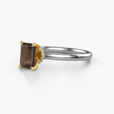 The ring shown above is called the Crystal EME 3, we call this a solitaire ring because it contains a single gemstone. The engagement ring is made in 14 Carat white gold and has a emerald cut smokey quartz of 7x5 mm. This classic white gold solitaire ring with exquisite emerald cut smokey quartz is a beautiful engagement ring. The open prong setting allows light to strike the gemstone from various angles. The ring also stands out because of the high positioning of the gemstone. Because diamonds symbolize true love and purity, they make the perfect gift for the love of your life. The symbol of eternal love is the centerpiece of this solitaire ring. Like a diamond, all other types of precious metal have their own attributed symbolic meaning. You can compile the solitaire engagement ring yourself in various precious metal combinations. This one has the combination of 14 Carat white gold with gold. Each piece of jewelry is made by a team of passionate goldsmiths and jewel designers. This will make your crown jewel truly eye-catching.By using our modern techniques, we can design and customize the finest quality jewels with the utmost care for you. Our engagement rings are always priced 30 percent lower than other jewellers. We make engagement rings to order so we don't have to maintain a large stock. If you have a certain budget, we are more than happy to advice you accordingly.Do you have a specific ring in mind? One you came across somewhere. Please feel free to tell us your wishes and we will turn your design into a unique engagement ring. You can follow the development of your ring design because we use 3D drawings. This gives you a realistic preview of your design. We will gladly send you a non-binding offer, based on a fair price/ quality ratio. It will amaze you.To make it easier for you, we offer a 30 day return policy. Check our terms and conditions.