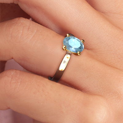 The ring shown above is called the Mignon ovl 1, we call this a solitaire ring because it contains a single gemstone. The engagement ring is made in 14 Carat white gold and has a oval blue lab grown diamond of 8x6 mm. This traditional white gold solitaire ring with exquisite oval blue lab grown diamond is a beautiful engagement ring. The open prong setting allows light to strike the gemstone from various angles. The ring also stands out because of the high positioning of the gemstone. Because diamonds symbolize true love and purity, they make the perfect gift for the love of your life. The symbol of eternal love is the centerpiece of this solitaire ring. Like a diamond, all other types of precious metal have their own attributed symbolic meaning. You can compile the solitaire engagement ring yourself in various precious metal combinations. This one has the combination of 14 Carat white gold with gold. Each piece of jewelry is made by a team of passionate goldsmiths and jewel designers. This will make your crown jewel truly eye-catching.By using a combination of the latest modern techniques, combined with ancient crafting, we can make all our engagement rings in our own studio. Each jewel is made to order. This is advantageous because we can offer you a price you won't find anywhere else.Our designers and goldsmiths work together each day, creating new jewels. Perhaps you have found a nice traditional engagement ring somewhere, which can be used to customize your unique ring. Please feel free to contact us. We will make you an offer, based on a fair price/ quality ratio, which will amaze you.To make it easier for you, we offer a 30 day return policy. Check our terms and conditions.