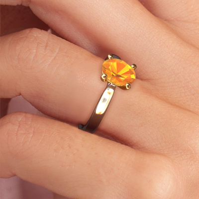 The ring shown above is called the Mignon ovl 1, we call this a solitaire ring because it contains a single gemstone. The engagement ring is made in 14 Carat white gold and has a oval citrin of 8x6 mm. This traditional white gold solitaire ring with exquisite oval citrin is a beautiful engagement ring. The open prong setting allows light to strike the gemstone from various angles. The ring also stands out because of the high positioning of the gemstone. Because diamonds symbolize true love and purity, they make the perfect gift for the love of your life. The symbol of eternal love is the centerpiece of this solitaire ring. Like a diamond, all other types of precious metal have their own attributed symbolic meaning. You can compile the solitaire engagement ring yourself in various precious metal combinations. This one has the combination of 14 Carat white gold with gold. Each piece of jewelry is made by a team of passionate goldsmiths and jewel designers. This will make your crown jewel truly eye-catching.By using a combination of the latest modern techniques, combined with ancient crafting, we can make all our engagement rings in our own studio. Each jewel is made to order. This is advantageous because we can offer you a price you won't find anywhere else.Our designers and goldsmiths work together each day, creating new jewels. Perhaps you have found a nice traditional engagement ring somewhere, which can be used to customize your unique ring. Please feel free to contact us. We will make you an offer, based on a fair price/ quality ratio, which will amaze you.To make it easier for you, we offer a 30 day return policy. Check our terms and conditions.